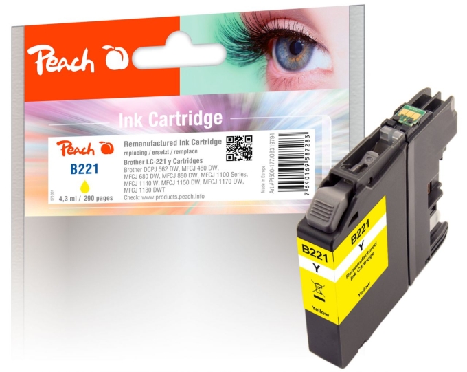 Peach Tintenpatrone gelb ersetzt Brother LC-221Y