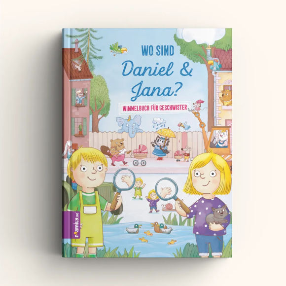 Personalisiertes Kinderbuch: Wimmelbuch für zwei Kinder - Sucht euch selbst in eurem hochwertigen Bilderbuch - Framily