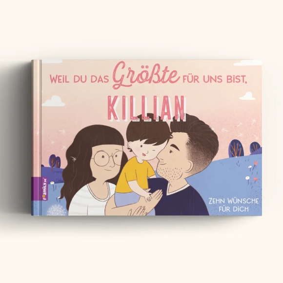 Personalisiertes Wunschbuch für dein Kind. Alles, was du deinem Kind wünschst in einem Buch! Was möchtest du deinem Kind Wichtiges mit auf den Weg geben? Sag es ihm in Reimform mit unserem wundervollen Buch „Weil du das Größte für mich bist“. Für jedes große und kleine Menschenkind im Alter von 0 bis 99 Jahre. Hochwertiges Bilderbuch mit festem Einband im Querformat von 29,7 x 21 cm – für lange Haltbarkeit in kleinen Kinderhänden. 28 Seiten, durchgehend farbig illustriert. Eine individuell anpassbare Widmungsseite mit Fotoupload ist inklusive. Da wir alles genau nach deinen Vorstellungen produzieren, dauert es 5-7 Werktage bis du deine Bestellung in den Händen hältst.