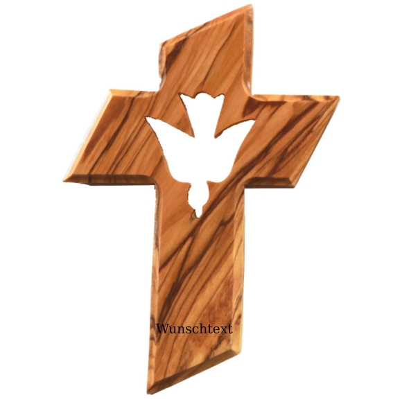 Personalisiertes Kreuz mit dem Heiligen Geist - handgefertigt aus Olivenholz