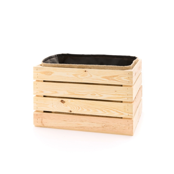 Pflanzkiste mit wasserfestem Jutebeutel | Helle Holzkiste, Apfelkiste, Obstkiste, Weinkiste, Obststeigen für deinen Garten | Die Stadtgärtner