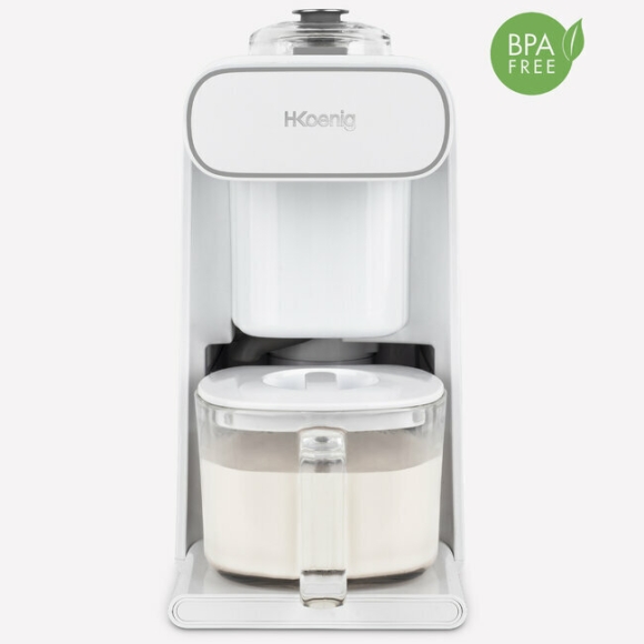 Stellen Sie Ihre eigene Pflanzenmilch her! Bereiten Sie leckere pflanzliche Getränke mit dem NATY210 Pflanzenmilchgerät von HKoenig zu! Ausgestattet mit einer Leistung von 1000 Watt und über den Touchscreen bis zu 24 Stunden programmierbar, starten Sie eines der 6 angebotenen Programme. Mit dieser einfach zu bedienenden Pflanzenmilchmaschine können Sie bis zu 1 Liter Milch aus trockenen oder gequollenen Sojabohnen, Nüssen, Samen oder Trockenfrüchten extrahieren. Sie haben sogar die Möglichkeit, Ihr Getränk nach Lust und Laune zu aromatisieren: Kakao, Vanille, cannelle, oder autres Gewürze. Die Klingen aus rostfreiem Stahl sorgen dafür, dass die Zutaten optimal gemixt werden. Das praktische Gerät lässt sich dank des automatischen Reinigungsprogramms und der Antihaftbeschichtung leicht reinigen. Die Glaskaraffe und der Deckel sind spülmaschinengeeignet. Design, die Pflanzenmilchmaschine fügt sich perfekt in Ihre Küche ein. Mit NATY210 ist die Zubereitung von pflanzlichen Getränken so ein...