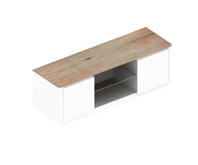 Lowboard "Arctic" mit 2 Türen mit Soft-Close und 2 Ablagen mit Kabledurchführung, abgerundete Kanten, weiss matt lackiert, Holzoberplatte in Wild Eiche, von phoenix, designed in der Schweiz, im angesagten Scandi-StyleB/H/T: 144x48x45 cm2 Türen mit Soft-Close2 offene Fächerpraktische KabeldurchführungenWeiss matt lackiertHolzpberplatte mit Holzstrukturmoderner Scandinavian StyleHergestellt aus PU matt lackiertem MDF und Wabenplatte, sowie eine melaminbeschichtete Spanplatte. Alle Beschläge und Schienen sind aus Metall.