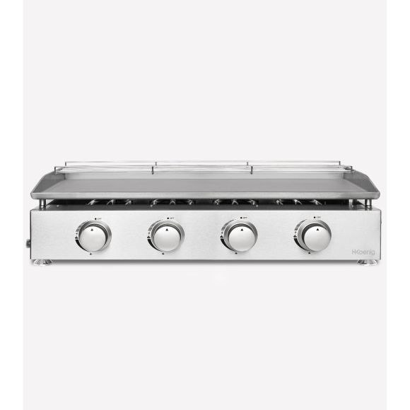 Teilen Sie leckere Grillgerichte im Freien mit Ihren Lieben auf der Plancha PLX940!Diese Plancha, die mit Propan- oder Butangas betrieben wird, ist direkt von professionellen Küchen inspiriert. Ausgestattet mit einer glatten 5-Millimeter-Edelstahlplatte kann sie eine Temperatur von bis zu 350 °C erreichen. Ihre vier Brenner sorgen für eine gleichmäßige Verteilung der Hitze auf der gesamten Fläche, sodass die Speisen perfekt angeröstet werden.Mithilfe der Kontrollknöpfe können Sie die Temperatur der vier Kochzonen unabhängig und nach Belieben einstellen. Auf dem Kochfeld kann ein abnehmbarer Rost angebracht werden, auf den Sie Ihre zu kochenden oder bereits gekochten Speisen legen und warm halten können. Auf der 80 x 35 cm großen Kochfläche können Sie eine Mahlzeit für bis zu 10 Personen zubereiten. Die Plancha bietet eine gesunde Art des Kochens, die für alle Arten von Lebensmitteln geeignet ist: Fleisch, Fisch, Gemüse usw. Ihr Gestell aus Edelstahl und die abnehmbare, spülmaschinenfes...