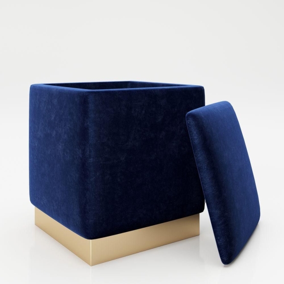Playboy eckiger Pouf BETTY BlauDer Pouf  "Betty"  aus der PLAYBOY-HOME Kollektion ist im Club-Stil der 60er Jahre gehalten. Der gepolsterte Hocker aus blauem  Samtstoff kombiniert mit dem goldenen Metallfuss runden das Retro-Design vollkommen ab. Der bequeme Sitzhocker eignet sich besonders gut im Wohn- und Essbereich, im Schlafzimmer sowie im Eingangsbereich oder in der Lounge.  Der super weiche Sitz passt sich punktelastisch an und sind auch nach langem Sitzen noch sehr bequem. Der Pouf bietet durch den abnehmbaren Deckel ebenfalls genügend Stauraum für Ihre Dinge. HIGHLIGHTS B/H/T: 37x44x37cm Sitzhöhe: 44cm Samtstoff in Blau Eckige Form mit Stauraum durch abnehmbaren Sitz/Deckel Metallfuss in Gold Belastbarkeit bis 80kg Vintage-Stil der 60er Jahre PLAYBOY Retro-Design MATERIAL Schaumstoff, Polyester Sperrholz Metall Alle Artikel der PLAYBOY-HOME Kollektion sind farblich und im Design aufeinander abgestimmt. Alle Möbel und Accessoires ergeben zusammen ein wertiges und stimmiges Gesamtkonzept.
