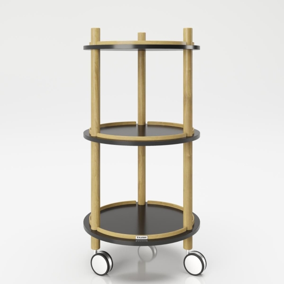 Playboy Rolltisch CARLY Der Rolltisch "Carly"  aus der PLAYBOY-HOME Kollektion ist im Club-Stil der 60er Jahre gehalten. Die 3 schwarzen Ablagen und Holzakzenten runden das Retro-Design vollkommen ab. Der praktische Tisch lässt sich durch die 4 Rollen einfach verschieben und eignet sich für alle Räumlichkeiten. Die beiden Böden bieten genügen offene Ablagefläche für Ihre Dinge. Der mobile Beistelltisch ist auch als Servierwagen gut geeignet.  HIGHLIGHTS Beistelltisch mit 3 Ablagen B/H/T: 40x79.8x40cm einfaches verschieben durch 3 Rollen schwarze runde Ablagen Gestell aus Massivholz Vintage-Stil der 60er Jahre PLAYBOY Retro-Design MATERIAL 100% FSC zertifiziertes MDF, Massivholz, NC Lack KunststoffrollenAlle Artikel der PLAYBOY-HOME Kollektion sind farblich und im Design aufeinander abgestimmt. Alle Möbel und Accessoires ergeben zusammen ein wertiges und wertiges Gesamtkonzept.
