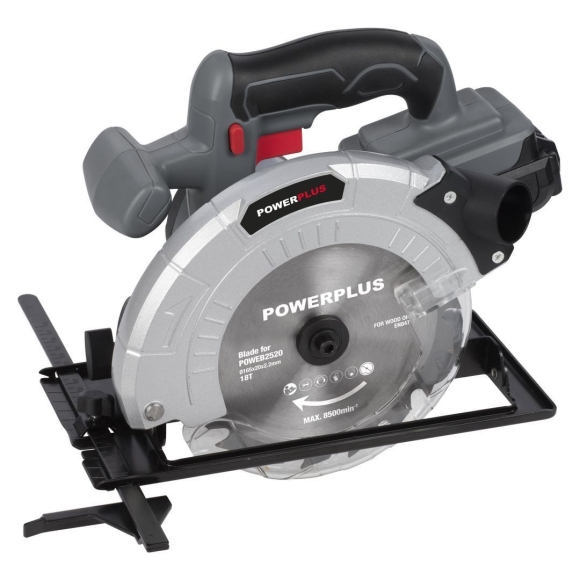 Mit diesem Starterset haben Sie alles im Haus, um damit an die Arbeitzu gehen. Es beinhaltet eine kabellose 18-V-Kreissäge, ideal füralle Ihre großen Sägearbeiten. Damit kombiniert erhalten Sie aucheine Schneidscheibe mit Ø165 mm für Holz. Außerdem beinhaltetdieses Set auch noch den dazugehörigen 18-V-Akku und das Ladegerät,sodass Sie gleich loslegen können. Der Akku passt auch in alleElektrogeräte und Gartengeräte aus dem „One Fits All”-Sortimentvon Powerplus.WOZU EIGNET SICH DIESES KREISSÄGEN-STARTERSET?Diese Powerplus-Kreissäge aus dem „One Fits All“-Akkuprogrammhilft Ihnen, ganz einfach lange, gerade Stücke aus Holz zu sägen.Mit der Seitenführung können Sie bis zu 100 cm parallel zu einerKante sägen. Auch Gehrungssägeschnitte gehören zu denMöglichkeiten dieser vielseitigen Kreissäge. Sie sägt damit bis zu52 mm tief, sodass auch stärkere Bretter oder große Platten keinProblem darstellen.Das Gerät arbeitet mit einem „One Fits All”-Akku mit 18 V (3,0Ah), der zu diesem Set gehört. Der Akku passt in alle Elektrogeräteund Gartengeräte aus dem „One Fits All“-Sortiment. Das Setumfasst auch das 18-V-Ladegerät, das sowohl mit den 1,5-Ah- als auchden 3,0-Ah-Akkus kompatibel ist. Je höher die Akkukapazität, destolänger die Betriebszeit. Mit dem 3,0 Ah Akku können Sie also nochlänger arbeiten. Die 2 LED-Leuchten des Ladegeräts lassen Siewissen, wann der Akku vollständig geladen ist.DIE VORTEILE DES KREISSÄGEN-STARTERSETS:Vielseitig: Sie können die Kreissäge zum Sägen von Holz verwenden.Sie können mit ihr hauptsächlich lange, gerade Sägeschnitteausführen. Sowohl bei großen als auch bei stärkeren Platten bis zu52 mm. Sie sägen auch ganz einfach mit einer Neigung bis zu 90 Gradund dank der Seitenführung können Sie vollkommen sauber bis zu 100mm parallel zu einer Kante sägen.Präzise: Die Kreissäge kann auf ein Sägeblatt mit Ø165 mm zählen,dass mit einer Drehzahl von 4 000 U/min arbeitet. Dadurch können Sieschnell sägen, ohne bei der Genauigkeit einzubüßen. Sie stellensogar die Sägenhöhe einfach ein, damit Sie nie zu tief sägen.Sicher: Außer einem Überlastschutz ist die Kreissäge auch mit einemSicherheitsknopf und einer Schutzkappe ausgerüstet, um damit IhreSicherheit zu garantieren.Sauber: Die Kreissäge lässt sich ganz einfach an einen Staubsaugeranschließen, um den meisten Staub aufzufangen. So halten Sie denArbeitsplatz sauber, atmen keinen Staub ein und Ihre Sicht auf dieSägelinie bleibt frei.Komfortabel: Der Softgrip-Handgriff sorgt dafür, dass die Kreissägesehr gut in der Hand liegt.Praktisch:  Die Kreissäge arbeitet mit einem 18-V-Akku und kannsomit überall eingesetzt werden. Bei jeder Aufgabe kommen Sie in denGenuss völliger Bewegungsfreiheit.DIE WICHTIGSTEN TECHNISCHEN EIGENSCHAFTEN: * Spannung: 18 V * Drehzahl: 0 – 4 000 U/min * Max. Schneidleistung 90°: 52 mm * Max. Schneidleistung 45°: 38 mm * Akkuleistung: 3 000 mAh * Spannung Ladegerät: 220 - 240 VWAS BEFINDET SICH IN DER VERPACKUNG?1 x POWEB2520 Kreissäge1 x Sägeblatt für Holz (Ø165 x 20 mm - 18 Zähne)1 x Seitenführung1 x Sechskantschlüssel1 x Akku 18 V / 3,0 Ah1 x Ladegerät 18 V1 x Anleitung