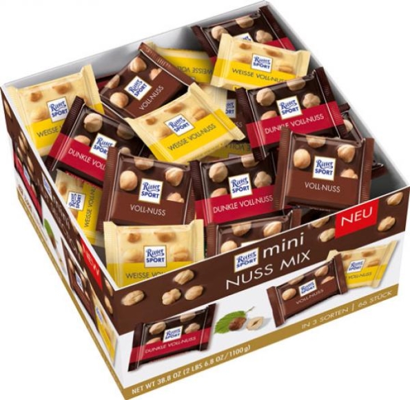 Ritter Sport Mini Nuss Mix, 3 Sorten (Voll-Nuss, Dunkle Voll-Nuss, Weisse Voll-Nuss), 66 Stück, 1.1 kg (22,72 EUR / kg)