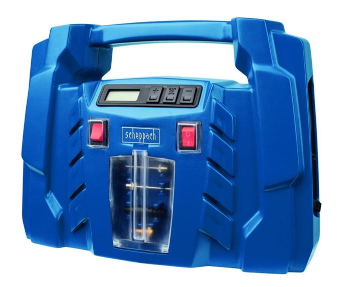 Scheppach Mobiler Kompressor Air Force 5Druckluft für unterwegs, mit dem Air Force 5 von scheppach. Der  handliche Kompressor im Kofferformat kann sowohl an eine 230 V Steckdose als auch an die 12 V Steckdose eines Autos angeschlossen werden. Ein digitales Manometer zeigt den aktuellen Druck des aufgepumpten Gegenstandes und ermöglicht die Voreinstellung des gewünschten Druckes von 0,1 bis 8 bar. Sobald dieser Druck erreicht ist, schaltet der Kompressor automatisch ab. Das gesamte Zubehör ist komfortabel an den Seiten des Geräts bzw. in einem Frontfach verstaubar.•  Handlicher, mobiler Kompressor – perfekt für’s Auto•  Betreibbar mit 12 V und 230 V~•  Ideal, um im Pannenfall den Reifen aufzupumpen•  Druck digital mess- und voreinstellbar•  Inkl. 600 mm Druckluftschlauch und 4 Düsen für Auto-/ Fahrradventile, Schwimmhilfen, Bälle, etc.•  Kabel und Zubehör direkt am Gerät sicher verstaubar
