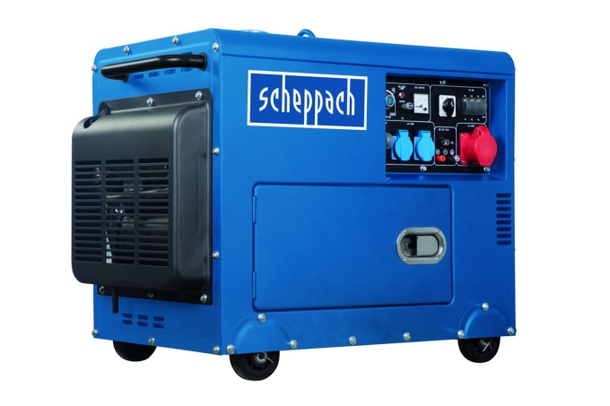 Scheppach SG5200D Stromerzeuger 5000W Diesel-Generator mit Elektrostart Max. 5000 W Ausgabeleistung Ein 400 V Anschluss, zwei 230 V Anschlüsse und ein 12 V DC Konnektor für maximale Flexibilität Stabiles und robustes Gehäuse mit Fahrvorrichtung und Handgriff Fahrvorrichtung mit vier Räder und Handgriff Ca. 16 Liter Tank für einen stundenlangen Einsatz des Generators Dank des 400 V Stromanschlusses können auch Maschinen mit Starkstrombedarf betrieben werdenLieferumfang 1x Scheppach Stromerzeuger 5000W / SG5200D