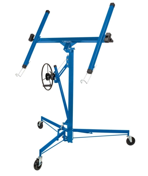 • Montagehilfe für Überkopfarbeiten im Innenausbau und Trockenbau – ideal zum Heben von Lasten wie Rigipsplatten, Spanplatten, Holz-, Metallpaneelen • Großer Hebebereich von 1220 – 3350 mm• Bis maximal 68 kg Traglast geeignet• Geeignet für Platten mit einer maximalen Größe von 1220 x 4880 mm• Um 60° neigbar – dadurch auch optimal für schräge Decken und Wände einsetzbar• 3 um 360 Grad schwenkbare und leichtgängige Rollen inklusive Feststellbremse ermöglichen raschen Arbeitsplatzwechsel• Praktischer Kurbelmechanismus und automatische Bremse• 2 große Auslegearme - ausziehbar in 3 Stufen: 1280 / 2340 / 2950 mm• Schutzkappen an den Auslegearmen verhindern Kratzer und Beschädigungen• 2 Anschlaghaken verhindern ein Verrutschen der Platte• Die stabile Konstruktion, ein Eigengewicht von 34,5 kg und der breite Stativfuß sorgen für einen besonders sicheren Stand• Komplett zerlegbar – dadurch einfach zu transportieren und platzsparend zu verstauen• Einfacher und schneller Auf- und Abbau