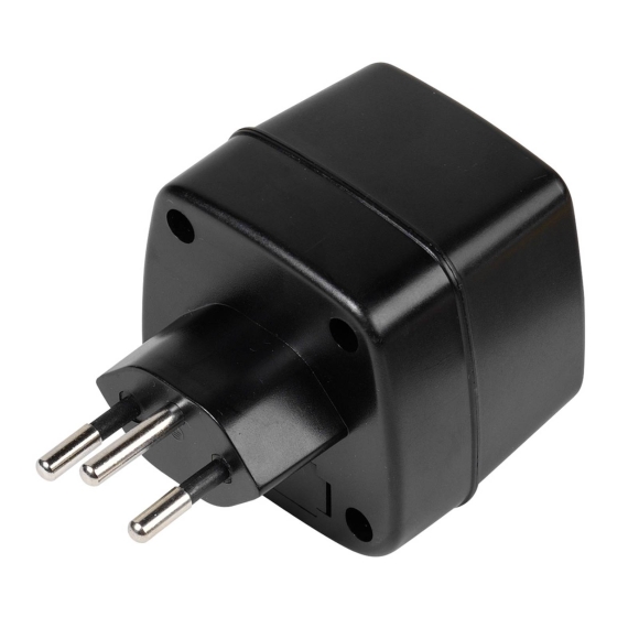 Reisestecker Schweiz in Schwarz Der Reisestecker adaptiert einen Schuko-Stecker auf eine CH-Buchse. Er enthält eine Kindersicherung und eine 10A-Feinsicherung als Geräteschutz. Maximale Belastung: 250V, 10A, 50Hz. Achtung: Der Reisestecker ist kein Spannungs- und Frequenzwandler.