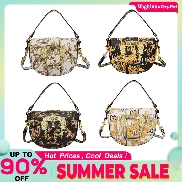 Schwarze halbrunde Satteltasche mit Riegel. Modische Umh?ngetasche f¨¹r Damen, stilvoll, hochwertig bedruckt