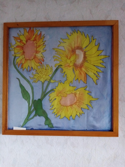 zum Verkauf steht ein Seidenmalbild 90 x90 .