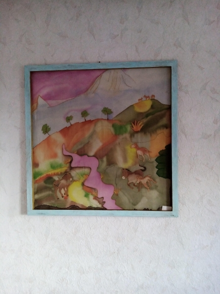 zum Verkauf steht ein Seidenmalbild 90 x90 .