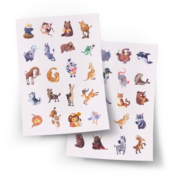 Stickerbogen mit 40 bunten Tier-Aufklebern