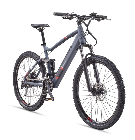 img{max-width:100%}Telefunken 27,5 Zoll Mountain E-Bike Aufsteiger M935 Graphit FLEXIBILITÄT: Das Pedelec E-Bike mit 27,5 Zoll Reifen ist dankAluminium MTB-Rahmen, MTB-Federgabel und24-Gang-Shimano-Altus-Kettenschaltung leicht und robust zugleich REICHWEITE: Die Kombination aus integriertem Ananda Hinterradmotor(Direktantrieb) mit 250 Watt und hochwertigem vollintegriertem GreenwayLi-Ion Akku sorgt bei bis zu 25 km/h für Tretunterstützung mit einerReichweite von bis zu 120km; 14 Ah / 36 V / 504 Wh TECHNIK: Ein LCD-Display versorgt Sie während der Fahrt mit allenwissenswerten Informationen wie z.B. zurückgelegte Strecke,Geschwindigkeit oder Akku-Ladezustand KOMFORT: Der sportliche Selle Royal MTB-Sportsattel und der MTB-Lenkermachen das Elektrofahrrad ideal fürs Gelände - ShimanoScheibenbremsen sorgen für Sicherheit SICHERHEIT: Das E-Mountainbike ist nicht zulassungspflichtig und wird zu 98% montiert angeliefert  Das E Bike MTB Aufsteiger M935 von Telefunken ermöglicht Ihneneine perfekten Einstieg ins freie Gelände und unterstützt Sie dabeidurch den eingebauten Motor mit 250 Watt. Dieser wird vomvollintegrierten Akku (36 V, 14 Ah) versorgt und ermöglicht Ihnen eineReichweite von bis zu 120 Kilometern, je nach Belastung. Auf demmitgeliefertem LCD-Display werden Sie während der Fahrt mit allenwichtigen Informationen versorgt. Mit der 24-Gang Kettenschaltung vonShimano und der MTB Vollausstattung steht der nächsten Geländetour mitdem Telefunken E-Bike nichts mehr im Wege. Für Ihre Sicherheit sorgenShimano Scheibenbremsen vorne und hinten. Da das Fahrrad zu98 Prozent vormontiert ausgeliefert wird, müssen Sie nach der Ankunftnur noch wenige Handgriffe vornehmen (Lenker gerade stellen, Pedalemontieren und Schrauben überprüfen) und können so in kürzester Zeit zuIhrer ersten Probefahrt durchstarten. Bitte beachten Sie, dass das E-MTBbei Auslieferung keine Lichtanlage und Reflektoren besitzt und dahernicht für öffentliche Straßen zugelassen ist. Eine mögliche Nachrüstungbleibt Ihnen überlassen.Die Reichweite eines Pedelecs ist u. a. maßgeblich von folgenden Faktoren abhängig:gewählte UnterstützungsstufeBeladung des Bikes (Gewicht des Fahrers/der Fahrerin zzgl. Gepäck)Geländeprofil (Ebenen/Steigungen/Gefälle)gewählter GangUntergrund (Asphalt, Feldweg, Schotterstrecke, Waldboden, matschiger Untergrund)E-Bike-Typ und BereifungReifendruckLadezustand des AkkusAußentemperaturWindverhältnisseTrittfrequenzDie persönliche Reichweite ergibt sich aus dem Mix der oben angeführten Punkte und hat eine sehr große Spannbreite zwischen ca. 25% - 150% des angegebenen Reichweitenwertes. Die besten Reichweitenwerte erreichen Sie bei mittlerer Unterstützungsstufe, möglichst niedrigem Gang bei hoher Trittfrequenz Gewicht der Zuladung inkl. Gepäck bei 75 Kilogramm, maximal zulässiger Reifendruck, ebener Strecke, 20 °C Aussentemperatur, Windstille, asphaltiertem Untergrund und voll geladenem Akku. Nicht zu verwechseln ist ein Pedelec mit einem benzin- oder elektrisch angetriebenen Fahrzeug. Die Reichweite des Pedelecs addiert sich aus der menschlichen und elektrischen Leistung.