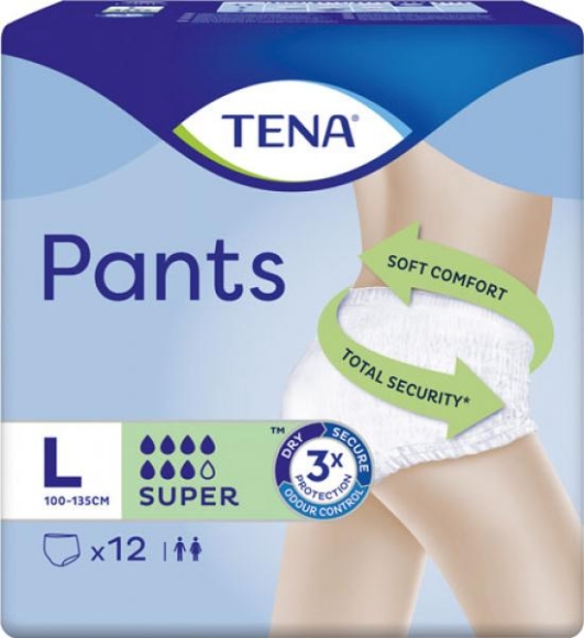 TENA Pants Super Größe L (Hüftumfang 100 bis 135 cm), mittlere bis schwere Blasenschwäche, 12 Stück (2,23 EUR / Stück)