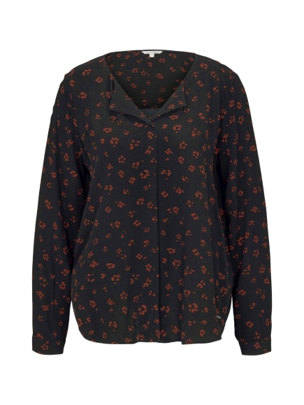 Eine schwarze Bluse mit farbigen Akzenten. Die 100% Viskose fließen angenehm. Durch den abgerundeten Saum gibt es ein feminines Bild. Die Bluse bezaubert durch kleine Details wie eine verdeckte Knopfleiste.