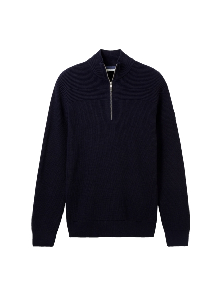 Tom Tailor Stehkragenpullover Structured Knit dunkelblau