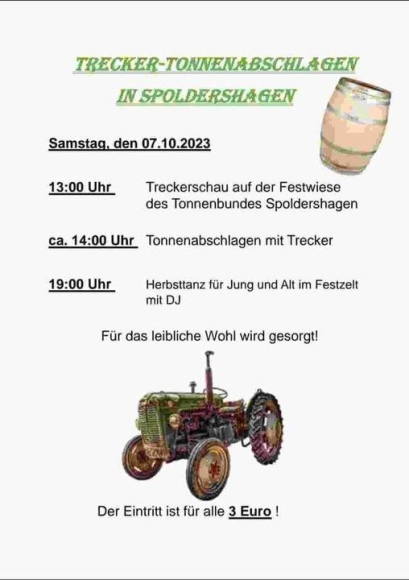 Ihr habt Samstag noch nichts vor,dann kommt nach Spoldershagen