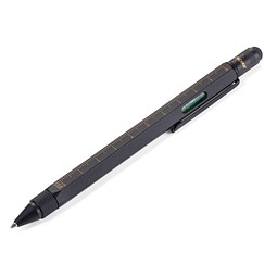 Der Troika Construction-Pen hat wirklich einiges drauf - und drin! Er bietet verschiedene Skalen, Zentimeter- und Zoll-Lineal, Schlitz- /Kreuzschraubendreher, Stylus und Wasserwaage - was will man mehr? Multifunktions-Kugelschreiber mit vier unterschiedlichen Maß-Skalen (1:20, 1:25, 1:50 und 1:100). Der schwarz schreibende Kugelschreiber hat einen Touch-Ball am anderen Ende, unter dem sich ein Kreuz- und Schlitzschraubendreher verbergen. In den Schaft ist eine Wasserwaage eingearbeitet.Zum Notieren, als Touchpen, zum Messen und SchraubenMaterial: Messing, lackiertIm GeschenkkartonNamensgravur möglichPerfektes Geschenk für Architekten, Bauplaner, Technische Zeichner, Ingenieure oder einfach für sich selbst.