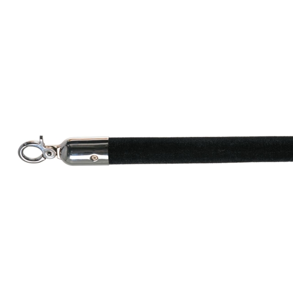 Absperrkordel velour schwarz, poliert, Ø 3cm, Länge 157 cm, 10103BCDieser Samtsperrkordon schafft mit seiner schönen Samtoptik eine luxuriöse Atmosphäre.Der Absperrkordon kann nach eigenen Wünschen zusammengestellt werden, indem die verschiedenen Farben des Kordons mit verschiedenen Verschlüssen, nämlich Messing und Chrom, kombiniert werden.