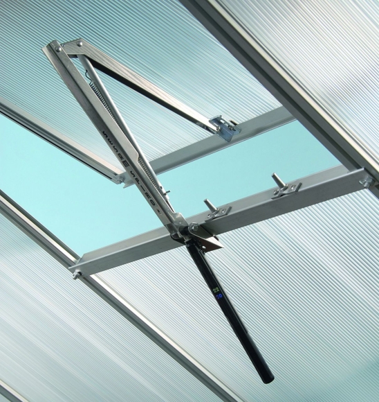 Die automatischen Fensteröffner von Vitavia sorgen für die automatische Öffnung und Schließung Ihrer Gewächshausfenster, und zwar stromlos und präzise: Das pflanzliche Wachs im Inneren des Kolbens dehnt sich temperaturabhängig aus und schiebt so das Fenster bis zu 45 cm auf. Auch der Temperaturbereich kann festgelegt, also an Sommer und Winterzeit angepasst werden. Die Heber aus Aluminium sind einfach und ohne Bohrung in das Dachfenster einsetzbar, in verschiedenen Farben erhältlich und passen in alle üblichen Gewächshausfabrikate.