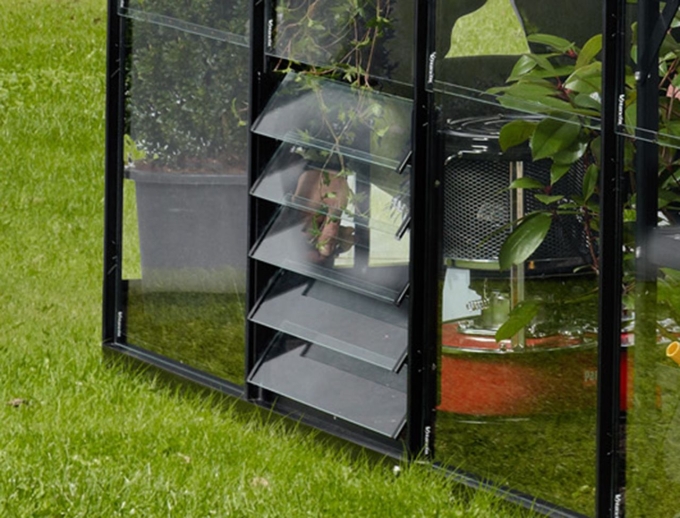Das Lamellenwandfenster gewährleistet die zugluftfreie und damit sehr schonendeBelüftung Ihrer Pflanzen. Fünf stufenlos verstellbare Glasscheiben lassengenau so viel Außenluft ins Gewächshaus strömen, wie Ihre Pflanzen benötigen– und zwar in mehreren Schichten, sodass mehrere kleinere Luftströme sanftIhre Pflanzen streifen. Im Aluminiumrahmen eingefasst, fügt sich das Lammellenfensterperfekt in Ihr Vitavia Gewächshaus ein. Ausgestattet mit einemautomatischen Fensterheber öffnet sich das Lamellenfenster sogar temperaturabhängigvon ganz allein – ohne Strom.