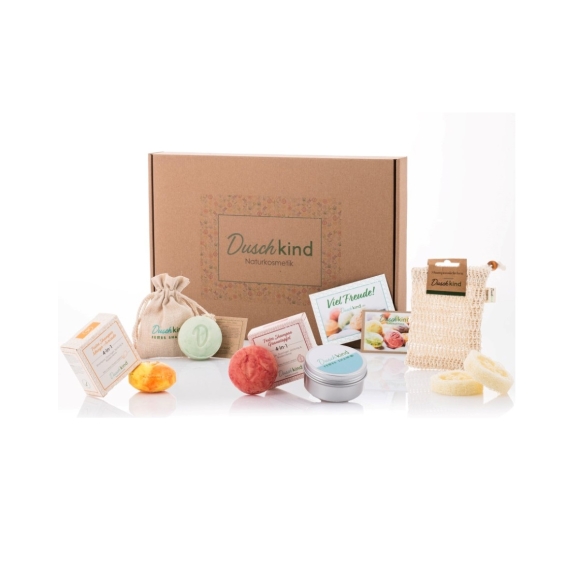 Duschkind Naturkosmetik Geschenk für Frauen. Unsere festen Stücke sind sowohl als Shampoo als auch als Duschgel verwendbar. Aloe Vera, Granatapfel und Mango Avocado, sind für jedes Haar geeignet. 100 % natürliche Inhaltsstoffe, bio, plastikfrei, sowie vegan. Liebevoll als Geschenkset zusammengestellt.