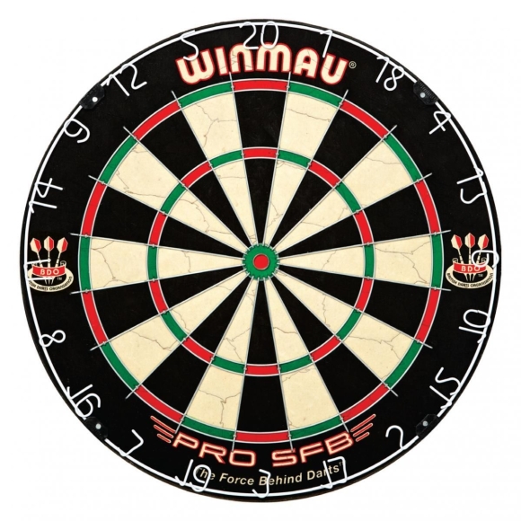 Das WINMAU STEELDARTBOARD PRO SFB, BRISTLE ist für Steel- und Softdarts geeignet.* Top Bristle-Turnierdarboardscheibe "WINMAU Pro SFB"* Sisalborsten* Metallnummernring* Klammerfreies Schwarzfeld (Bullseye)* Für Steel - und Softdarts geeignetZubehör: DartboardaufhängungMaße:45,7 x 45,7 x 4 cmGewicht: 5 kg