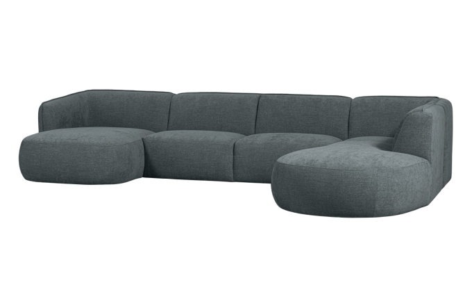 Woood Sofa Polly U-Form aus Webstoff Rechts Blau