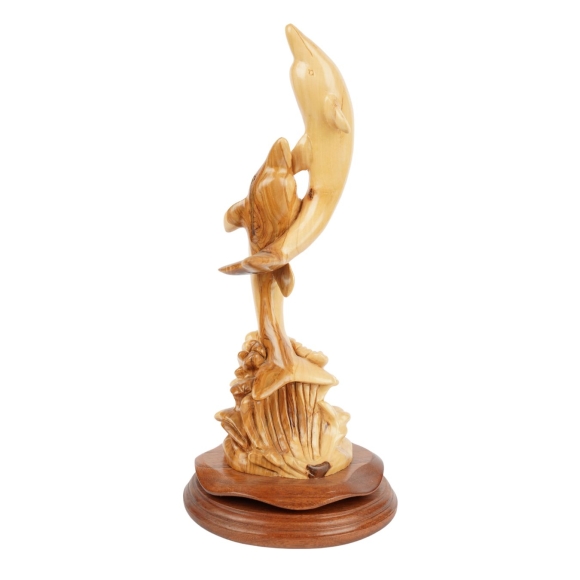 Zwei Delfine aus Olivenholz – Handgeschnitzte Skulptur aus Bethlehem (32 cm)